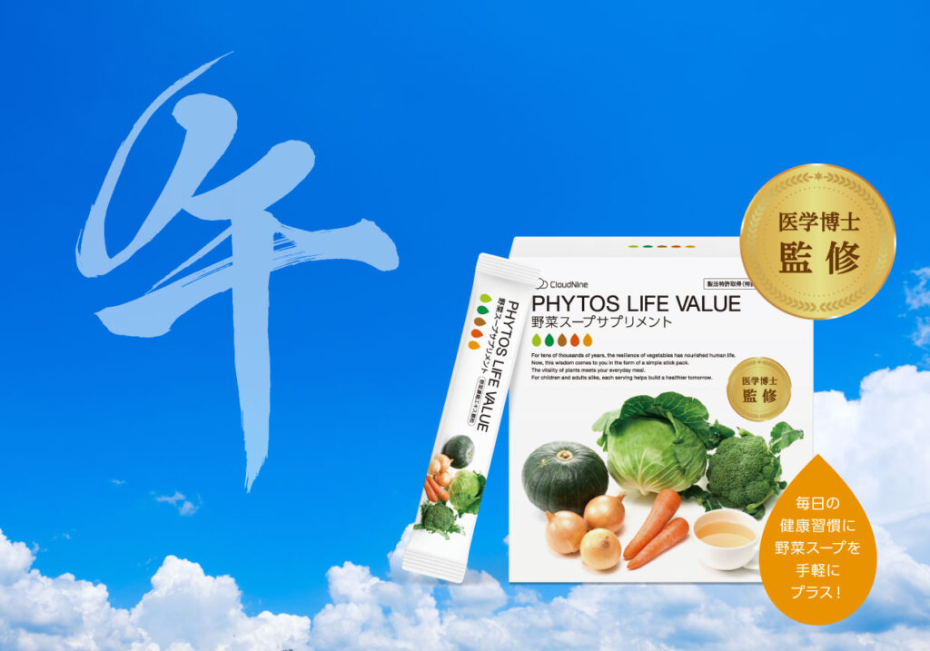 PHYTOS LIFE VALUEサプリメントは、厳選した5種類の野菜で作った野菜スープをギュッと濃縮エキス顆粒にした、革新的な次世代の野菜スープサプリメントです。